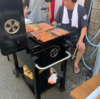 昨年はホットプレートで焼いていたウインナーでしたが今年は炭火焼となりパリッとした触感に
